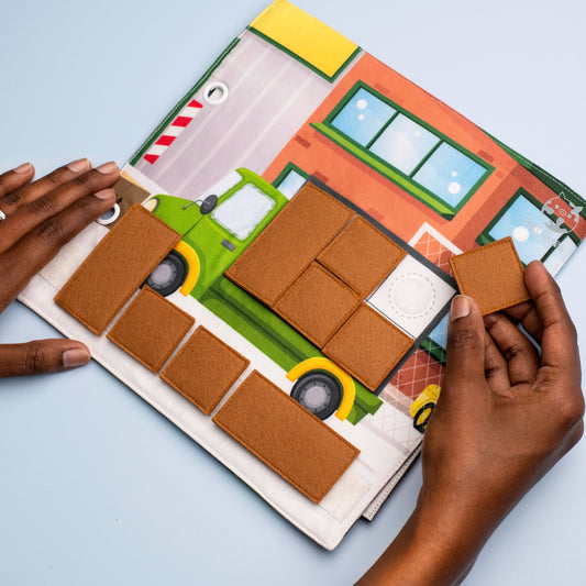 Transport Quiet Book Page - Truck Loading and Road Shaping